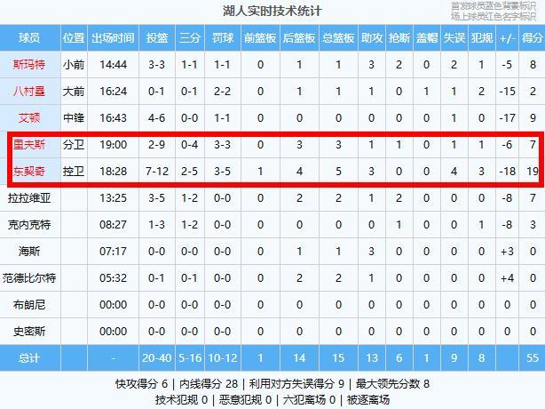 头号罪人(东契奇):12中7的19分5篮板3助攻4失误,正负值-18全队倒数第一!太粘球了,伤愈复出本不应该一上来就大包大揽破坏球队的化学反应,别看数据不错但防守端完全就是白给,是湖人落后头号罪人!
